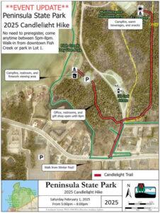 Winter is a magical time in Peninsula State Park. Enjoy the serenity of hiking the Park in winter on the evening of Saturday, February 7th. That’s the same night as the Fish Creek Winterfest!